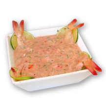 Camarón pre cosido, langostino, palmito, cebolla, limón.