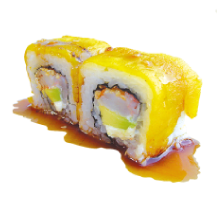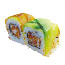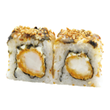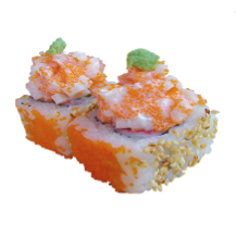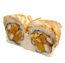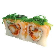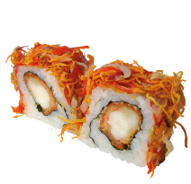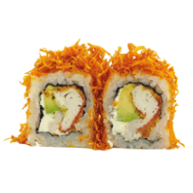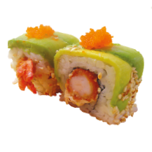 Kani, langostino parmesano, wakame, aguacate, queso crema y ajonjolí.