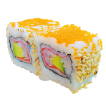 Caviar, langostino, kani, aguacate, ajonjolí.
