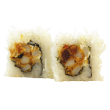 Langostino parmesano crispi, anguila ahumada, queso crema y ajonjolí.