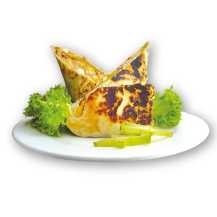 Pollo, queso mozarella, raíces chinas, cebolla blanca.
